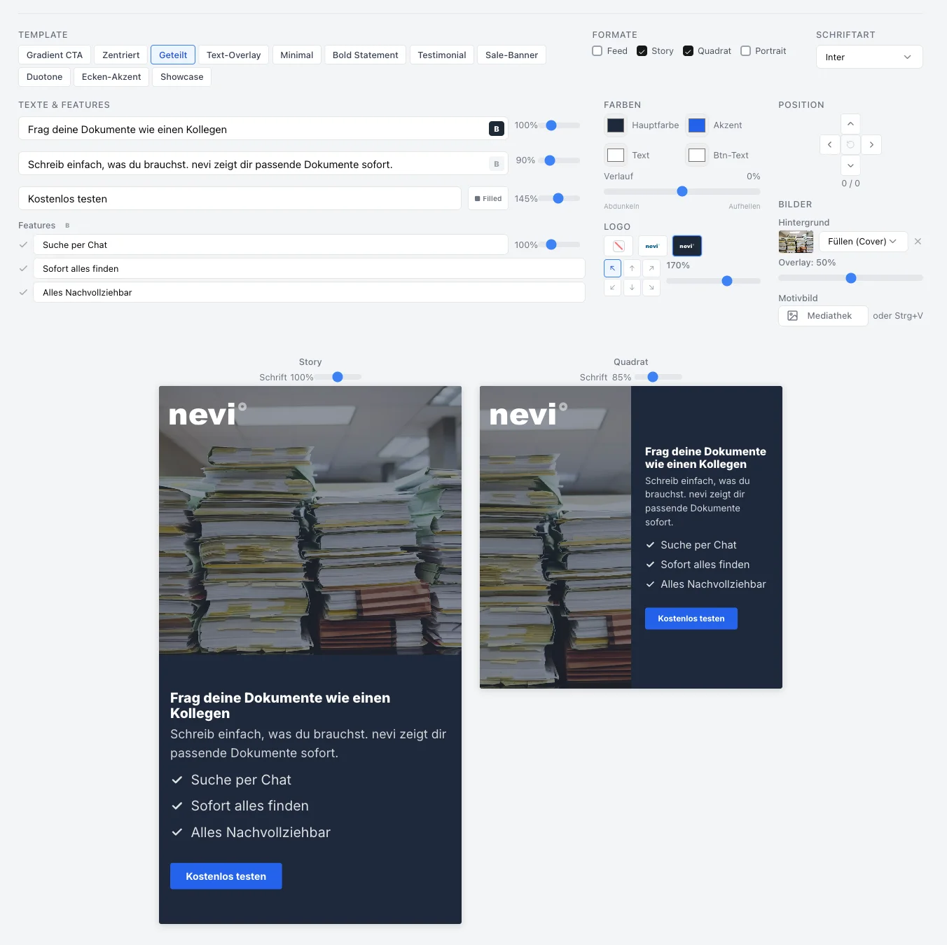 - Direkte Ausspielung auf Google und Meta