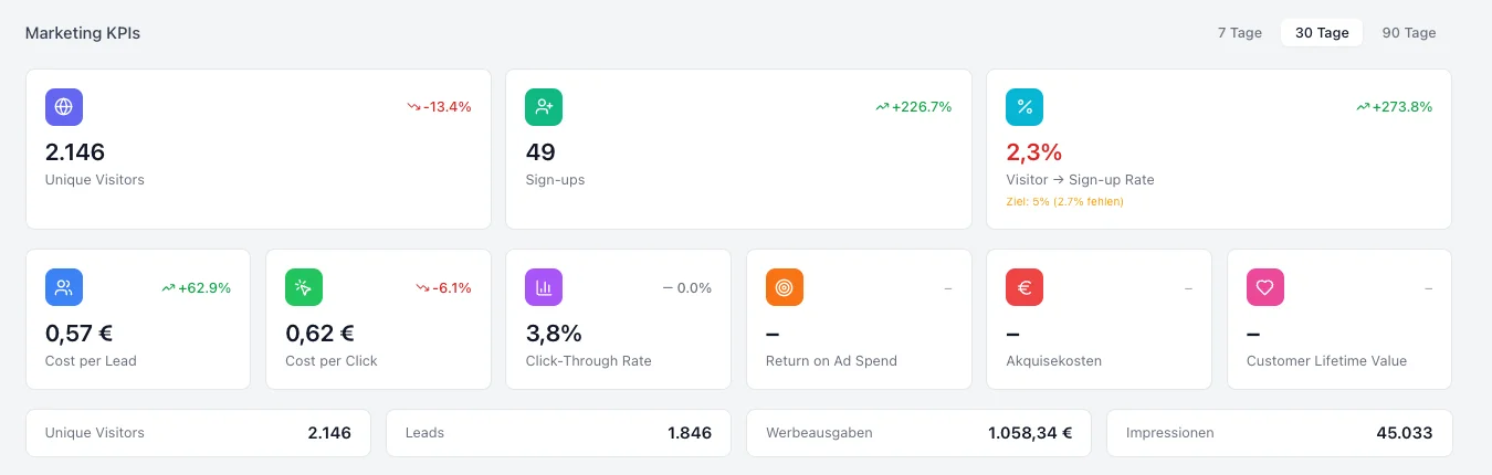 Marketing-Cockpit mit Traffic- und Lead-Analyse