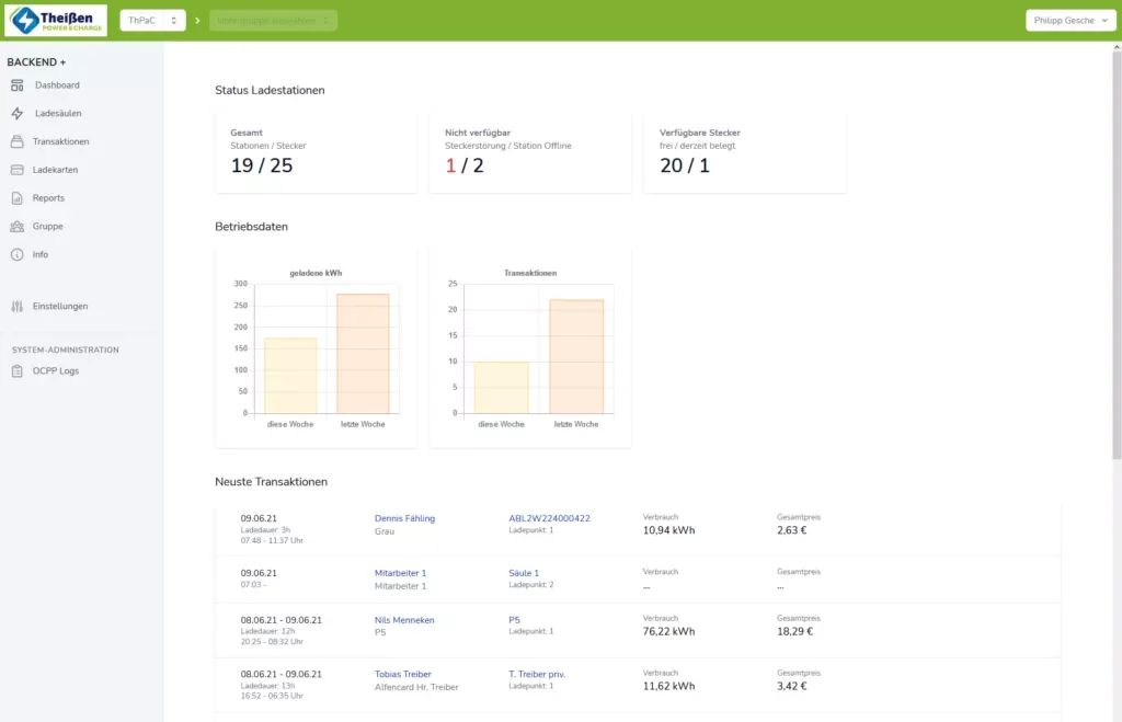 Das System wächst mit: Neue Ladestationen werden herstellerunabhängig integriert, neue Standorte in Minuten angelegt. Die Plattform bildet heute das technische Rückgrat des Geschäftsmodells von Theißen Power & Charge.